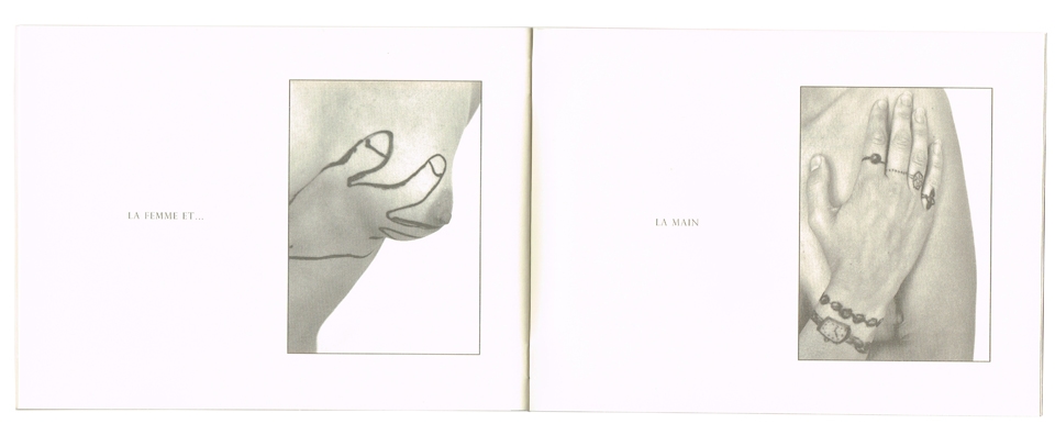 In 1975, Annette Messager launched a cycle entitled “Annette Messager : the cheater” during which La Femme et… was published in Geneva by another artist, John Armleder. Mixing topics from body art to image editing, the book is composed of a series of photographs presenting the made-up female form – the female artist’s naked body – on which interior and exterior, drawing and photographs merge, accompanied by laconic captions. The cheater, notes Annette Messager, “is never idle and is never lacking material as she plays with herself and on herself.” The tone of the book is sometimes moving (“the woman and the operation”), frankly comical (“the woman and the bearded one”), or falsely tragic as in brief sketches (“the woman and death”, “the woman and fear”).